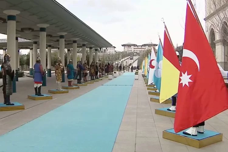 Devamını okuTürk Devletleri Teşkilatı Olağanüstü Zirvesi protokolünde 16 Türk Devleti bayrakları ve savaşçıları gösterildi.